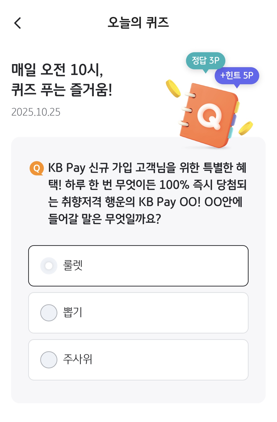 #2025년 10월25일 kbpay 오늘의퀴즈