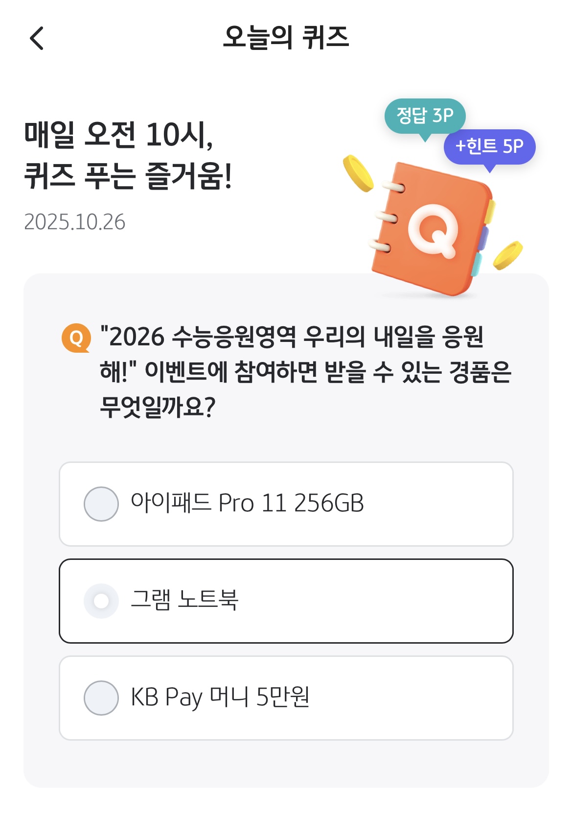 #2025년 10월26일 kbpay 오늘의퀴즈 정답