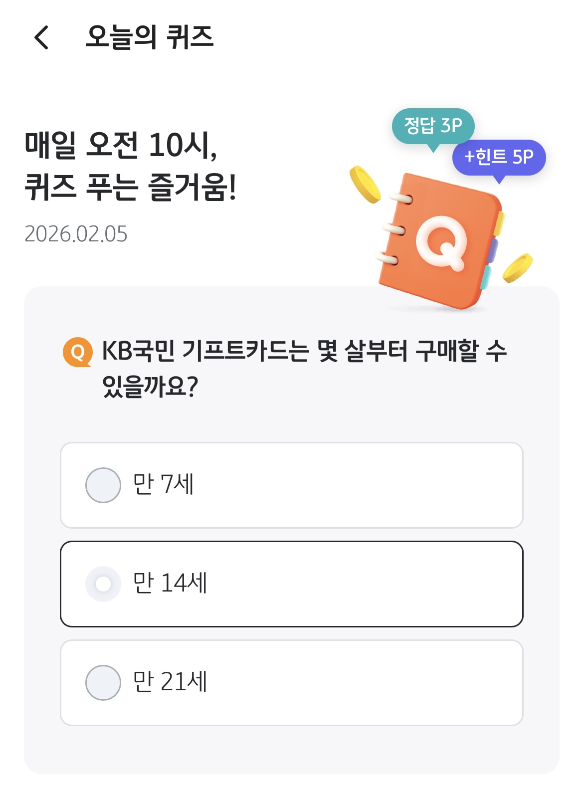 #kb 오늘의 퀴즈 2026년 2월5일 정답